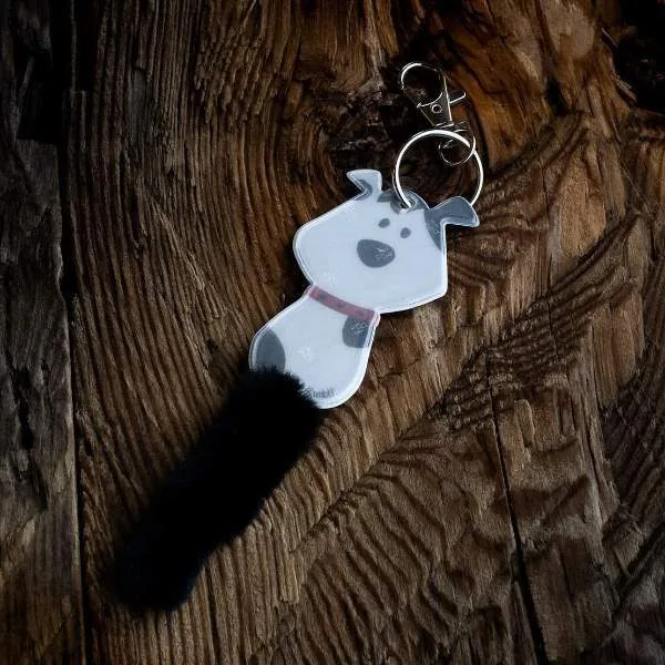 Hundurinn Rudolf er endurskinsmerki, í laginu eins og forvitinn og skemmtilegur hundur með langt og mjúkt skott.