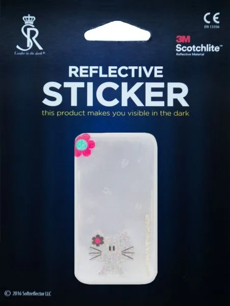 Límmiða endurskinsmerki sem ætlað er til að líma á skólatöskur, bakpoka og ýmsa aðra hluti.